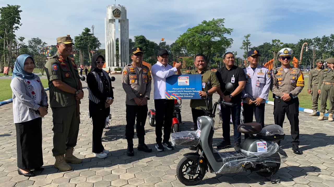 Kali ini, perusahaan ritel tersebut menyerahkan bantuan tiga unit sepeda listrik kepada Pemerintah Kabupaten Sidoarjo untuk mendukung mobilitas petugas Satuan Polisi Pamong Praja (Satpol PP) di kawasan Alun-Alun Sidoarjo.