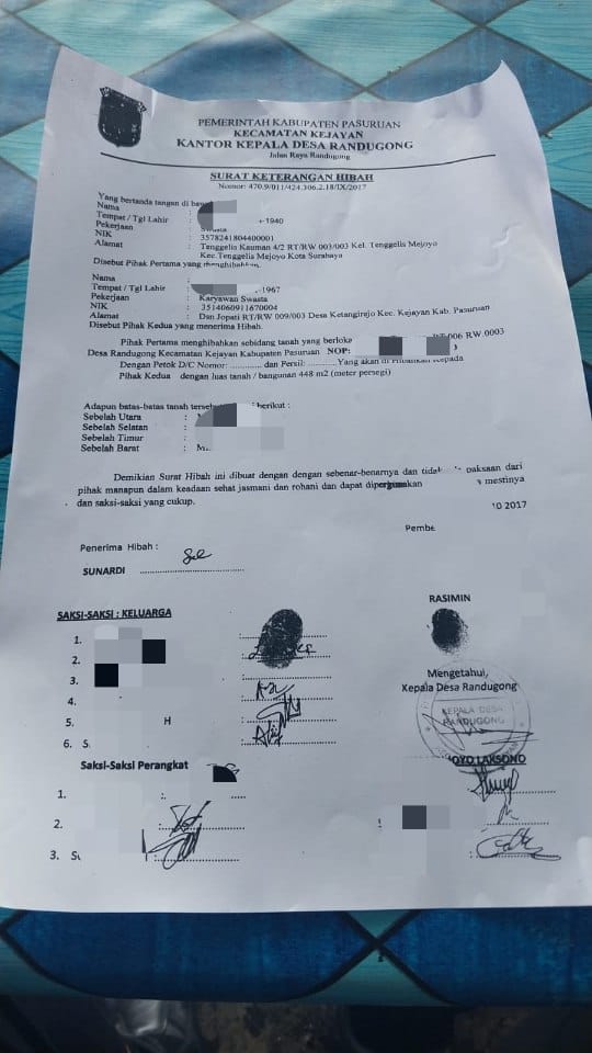 Situasi semakin rumit ketika proses pengukuran yang awalnya dilakukan perangkat desa berubah arah setelah muncul Surat Keterangan Hibah yang sudah ditandatangani dan distempel resmi.