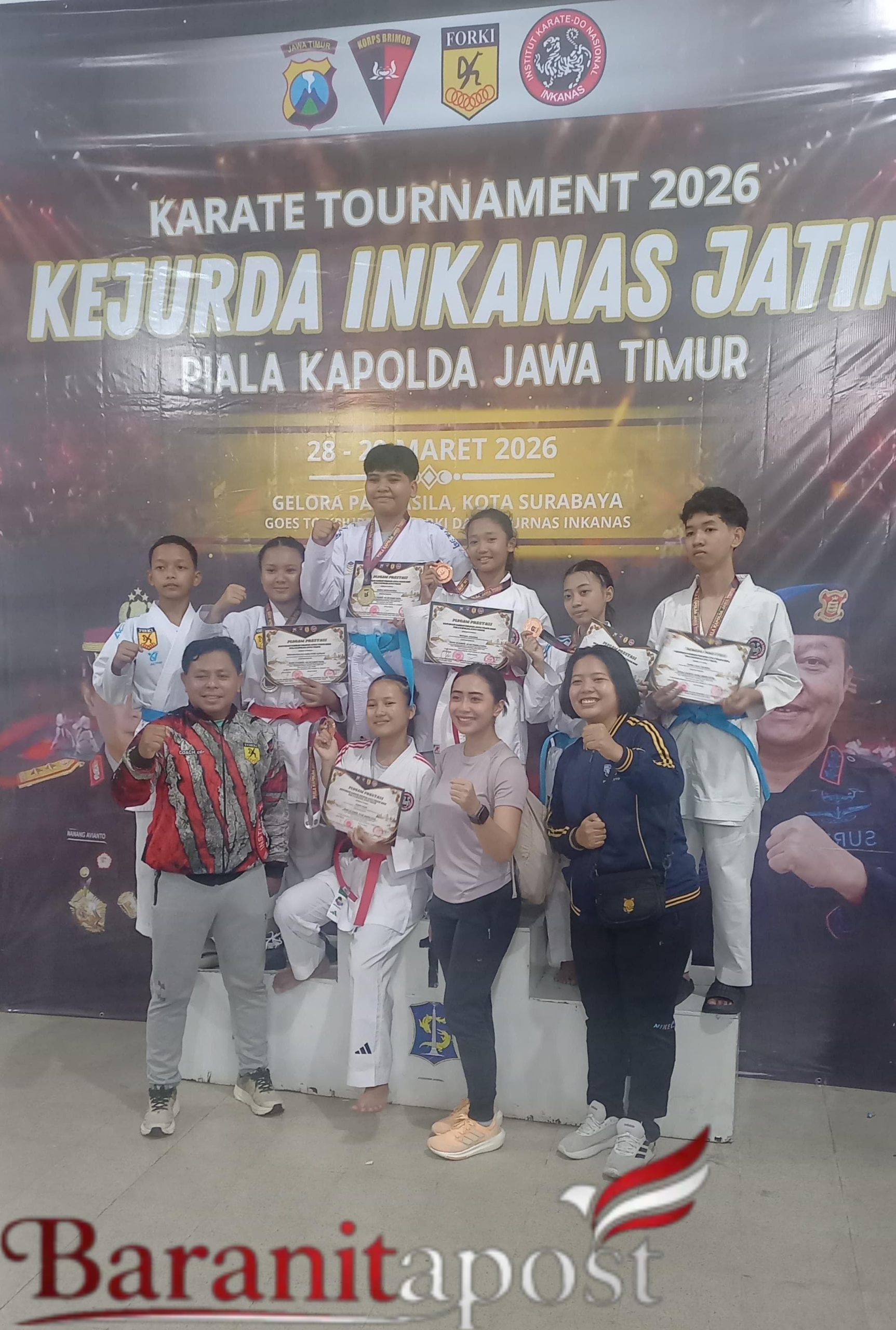 Pasuruan,baranitapost.com– Inkanas Polres Pasuruan mencetak prestasi membanggakan dengan menyabet enam medali dalam Kejuaraan Karate Piala Kapolda Jawa Timur 2026 yang berlangsung di Surabaya, Sabtu (28/3/2026). Capaian ini menegaskan kualitas pembinaan atlet muda binaan kepolisian di tengah persaingan ketat tingkat provinsi.
