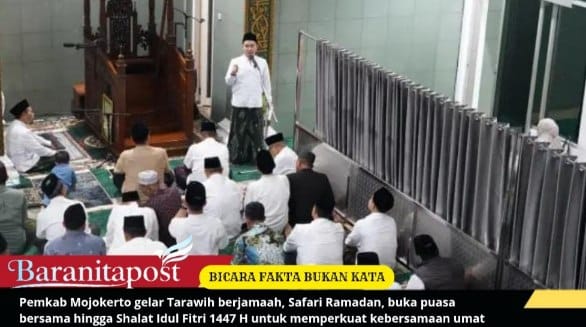 Bupati Mojokerto, Muhammad Al Barra, mengajak masyarakat bersyukur karena kembali dipertemukan dengan Ramadan 1447 H. Ia menegaskan perbedaan awal puasa memiliki dasar masing-masing dan meminta warga tetap saling menghormati. “Yang salah dan tidak boleh itu mereka yang tidak puasa,” ujarnya di hadapan jamaah.