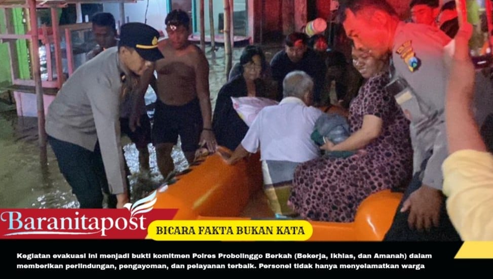 Puluhan personel Polres Probolinggo diterjunkan menangani banjir, mengevakuasi warga terdampak dengan cepat dan aman. Upaya mitigasi bencana terus dilakukan.